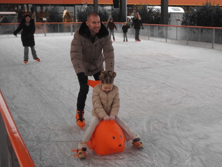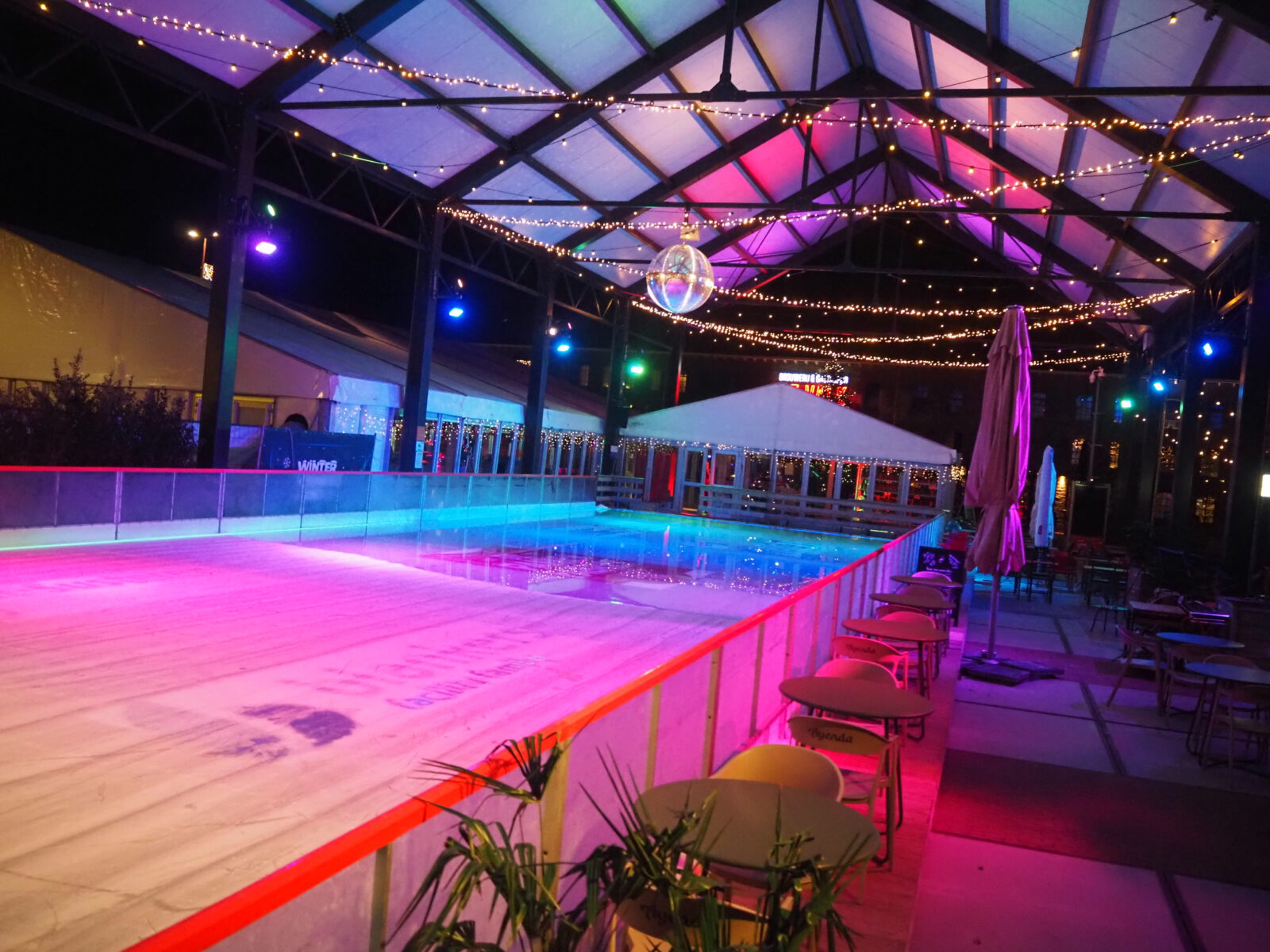 De schaatsbaan (400m2) is overdekt waardoor men ook tijdens slecht weer lekker droog kan schaatsen.
